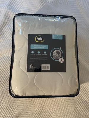 Serta Twin Microfiber Heated Mattress Pad White: 10 Heat Settings, Machine Washable, Fits 18" Depth