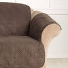 This Sure Fit Microfiber Non-Skid Furniture Cover has silicone dots on the reverse side to keep the cover from slipping off furniture. It stays securely in place. Made of polyester face fabric with a soft microfiber backing material. Quilted design included some polyester fill for added comfort. Perfect to protect furniture from pets.