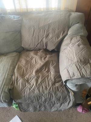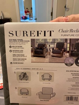 Protect your sofa with the SureFit® Non-Slip Waterproof Furniture Cover collection. It has a simple 1-piece design, with attached armrest covers, which makes it easy to put on and take off your furniture. The non-slip backing helps keep the cover in place and the waterproof layer protects against spills and stains. The stylish quilted pattern looks great in any room. Great for kids and pets.