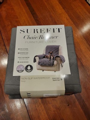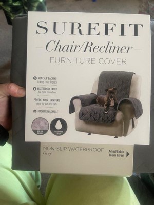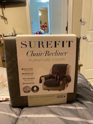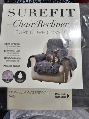 [This review was collected as part of a promotion.] This surefit non slip recliner cover works perfect for my recliner. We have 2 dogs that shed horrible and loved to jump on our furniture, this helps keep my recliner from being scratched up and getting messy from their paws. We have an oversized recliner and it still fits great. I love that this cover is machine washable too.