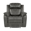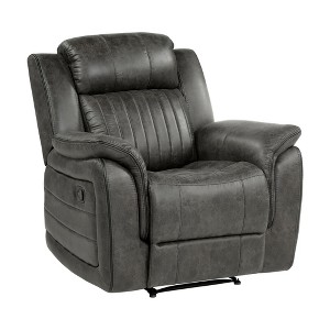Relax in comfort and style with the Centeroak Brownish Gray Microfiber Recliner Chair. Crafted with a solid wood and plywood frame featuring a metal reinforced seat, this chair offers durability and support. High-density foam padding over pocket coils ensures plush seating, while the polished microfiber upholstery provides a soft and inviting surface. The tab pull reclining motion allows you to easily adjust from seated to fully reclined, and removable seat backs offer added convenience.