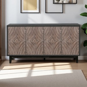 Mid-Century 60" Buffet Cabinet with Diamond Pattern Doors and Solid Wood Legs