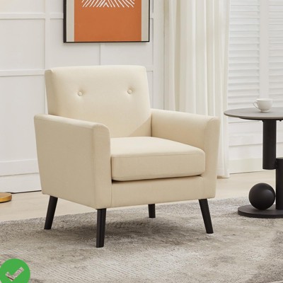 Mid-Century Accent Chair, Button Tufted Modern Upholstered Armchair with Wood Legs Accent Chairs for Living Room, Office, Bedroom