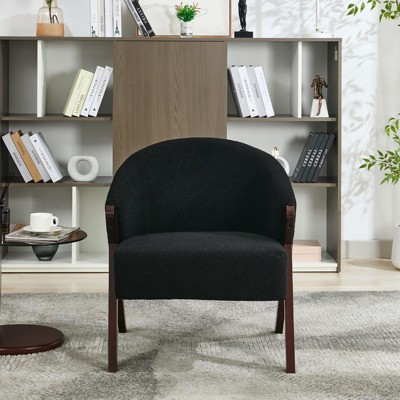 Mid-Century Accent Chair, Teddy Velvet, Linen, PU Leather with Wood Frame(1pc)