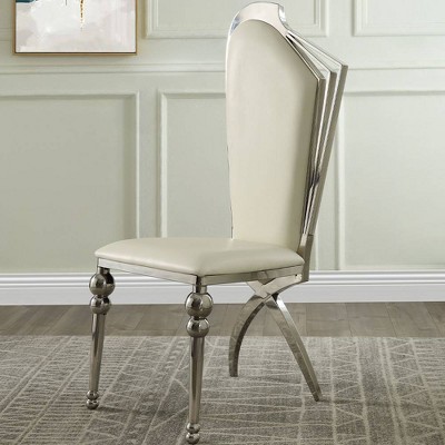 Mid Century Modern Dining Chairs Set of 2, Upholstered PU Leather Kitchen Chairs with Comfortable Stitching Seat for Dining Room, Living Room, Beige