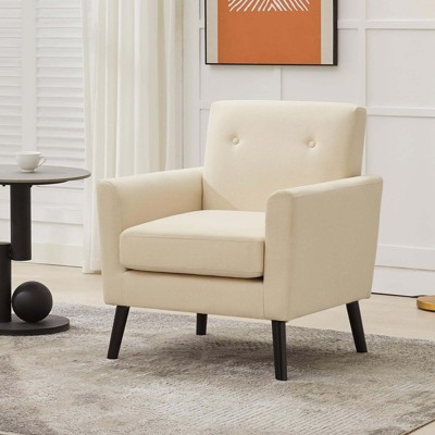 Mid Century Modern Fabric Accent Chair, Modern Wingback Living Room Chair, Comfy Armchair Single Sofa Chair with Wood Legs for Office,Bedroom