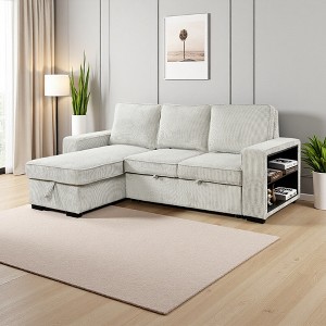 Mid-Century Modern L-Shaped Sectional Sofa with Pull-Out Bed, USB & Storage Chaise