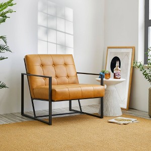 Add a touch of mid-century modern style to your home with the Glitzhome Tufted Accent Chair. Upholstered in distressed faux leather and accented with button-tufted decor, this chair is built on a sturdy metal frame with high-density foam padding for comfortable sitting. With clear instructions for easy assembly, this versatile piece is perfect for adding extra seating to any room.