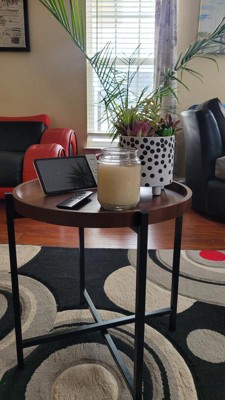 Mid-Century Modern Round Side Table with Removable Wood Tray Brown - Danya B.