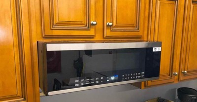 [This review was collected as part of a promotion.] I currently do not have the microwave hooked up due to us remodeling the kitchen- but we are making the perfect spot just for this microwave. The slim design makes the kitchen look sleek and doesn’t take up much space. The voice control is so perfect especially if you’re busy in the kitchen prepping! Our kitchen location doesn’t have much ventilation so the strong ventilation helps! It’s quieter than most microwaves(perfect for sneaking those midnight snacks and not waking your husband up so you don’t have to share) I think for a microwave, not many want to spend this amount and that’s understandable but this microwave comes with all the bells and whistles and looks good while doing it too!!! Worth every penny!