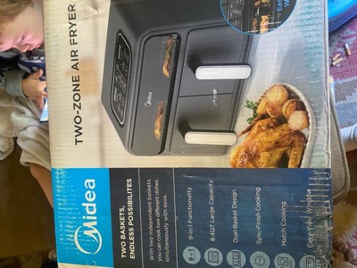 Midea 8.4qt Two-Zone Air Fryer: Dual Baskets, Digital Control, Nonstick, Cool Touch, 1650W, Black