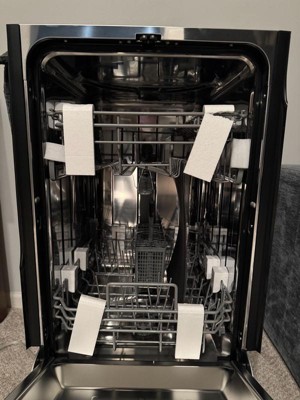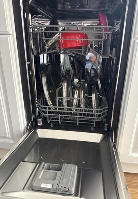 [This review was collected as part of a promotion.] I had the privilege to receive this beauty. Received with a dent in the stainless steel part of the dish washer and with water on the inside but this was very powerful when placing dishes and pans. Has placement for silverware and it's of beautiful great quality. Designed for a home with small space. But I love this.