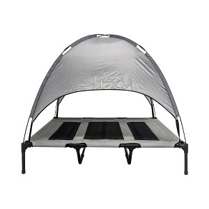 This off-the-ground dog bed with canopy can be used outdoors to protect your dog from the sun or you can remove the canopy and it becomes a sturdy indoor elevated bed. Keep your dog clean and cool with this sturdy cot. The mesh provides cooling ventilation and the canopy provides protection and shade from the sun. It is quick and easy to assemble so you can quickly have this dog cot displayed in your backyard or campsite! Lightweight, yet durable. Use indoors or outdoors.