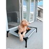 - This elevated dog bed keeps your pet from laying on the ground. Air movement will help them feel cooler.