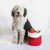 A white and red rope basket with a belt buckle mimics Santa's costume and belt.