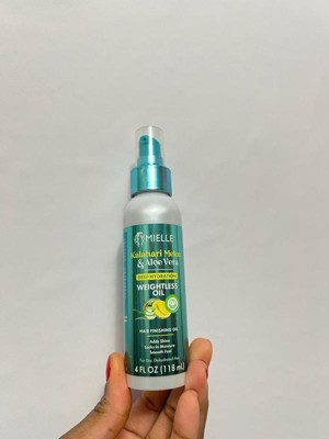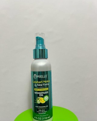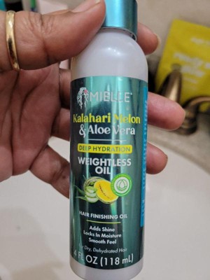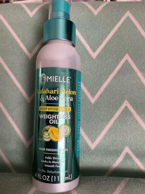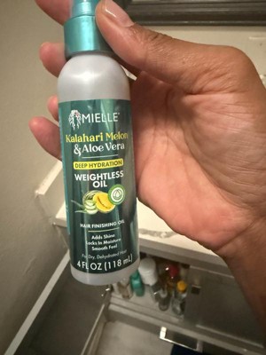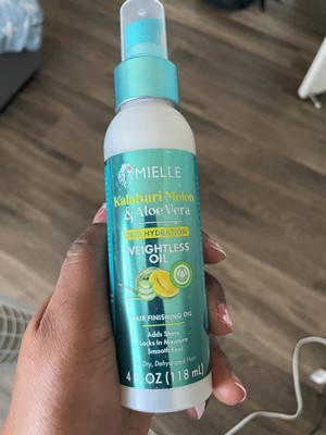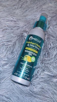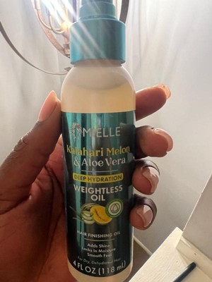 Mielle's NEW Kalahari Melon & Aloe Vera Deep Hydration Weightless Oil is a lightweight finisher that adds brilliant shine without weighing your hair down.