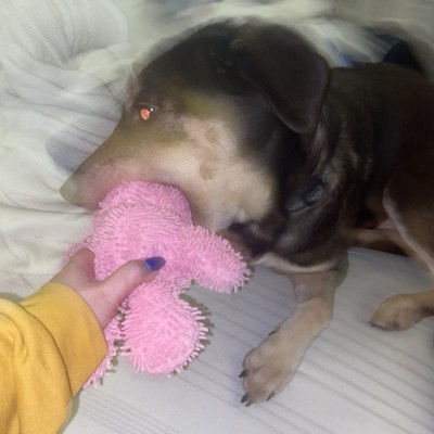 This toy is so soft and squeaky! My 70lb labs favorite toy so far!! He’s a fetch kind of guy and this thing is perfect and just floppy enough so it gives a different feel than a boring old tennis ball. Can’t wait to try a different shape from this line!