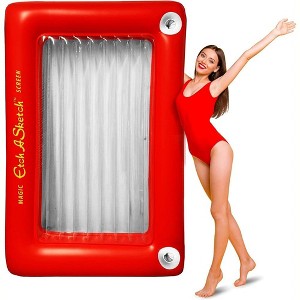 - STYLISH AND TRENDY: Make a statement at your next pool party with this replica Etch-A-Sketch pool float! A retro throwback that makes a great conversation piece as well as a great place to socialize!