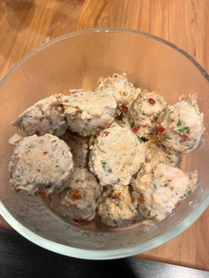 [This review was collected as part of a promotion.] Not the most appetizing picture but we made meatballs with the ground turkey and they were delicious! Already comes with seasonings but we added some herbs and sundries tomatoes.