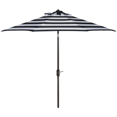 Milan Fringe 9Ft Crank Push Button Tilt Umbrella - PAT8008 - Navy/White - Safavieh