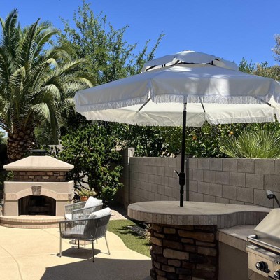 Milan Fringe 9Ft Double Top Crank Umbrella - PAT8208 - Grey - Safavieh