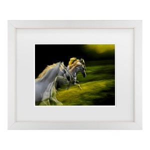 This ready to hang, matted framed Wall Décor Living Room by Trademark Fine Art features white horses running through the center of the frame. that'll look great in any bedroom, kitchen, bathroom, or apartment. Whether it's contemporary, rustic, modern, or traditional style wall art décor, Trademark Fine Art offers a variety of high-quality, carefully built pieces that will surely complement any style with art themes that range from fascinating abstracts to breathtaking landscapes. Each bathroom wall art piece is printed on durable cotton poly blended canvas using Giclee, a process for creating high-quality fine art reproductions that are nearly indistinguishable from the original piece.