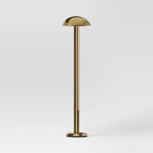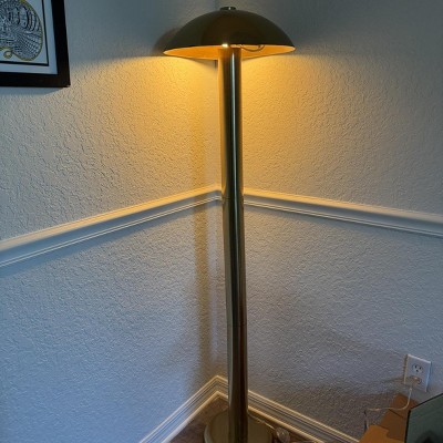 Bring soft lighting and timeless elegance to your space with the Mild Steel Floor Lamp from Threshold™. Standing tall at 63.25 inches, this mild steel floor lamp boasts a sleek frame paired with a round base and bowl-shaped shade in a brass finish for a polished look. Designed with a push-button foot switch and a 11.48-foot power cord, you can place this floor lamp next to your armchair or sofa to brighten up your space.