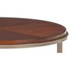 Constructed of an iron base with paper veneers and engineered hardwoodsThe bend metal legs offer an interesting centerpiece.Bottom shelf offers display or storage spaceMerlot finish
