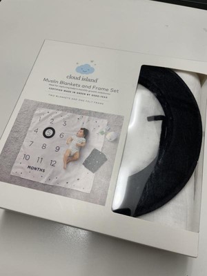 I can't wait to use this Cloud Island muslin blanket and frame set. Such a fun way to document our little ones milestones each month! Thin muslin, so not really a plush blanket, but perfect for capturing memories of your little one. Two blankets are included- one light and one dark. I especially love the gender neutral colors!