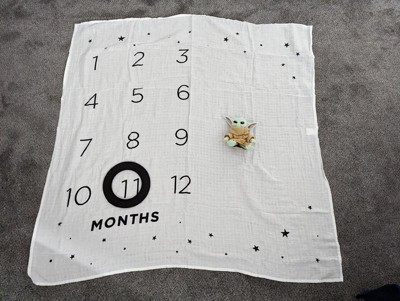 This item is quite cute. It has on huge muslin blanket that doubles as a milestone month photo blanket and a second muslin blanket that you can wrap the baby in when placing on the milestone blanket. Gender neutral black and white star theme make it a great baby shower gift too. The only negative I have is that the muslin is too thin, see-through in fact.