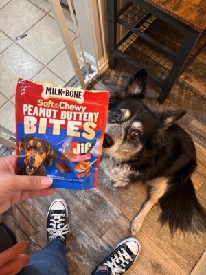 [This review was collected as part of a promotion.] He absolutely loves these and I will need to purchase regularly to make sure he has them. They are soft and easy for him to chew which is great because he's getting older. I would recommend to anyone with a dog that enjoys peanut butter.