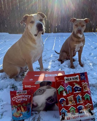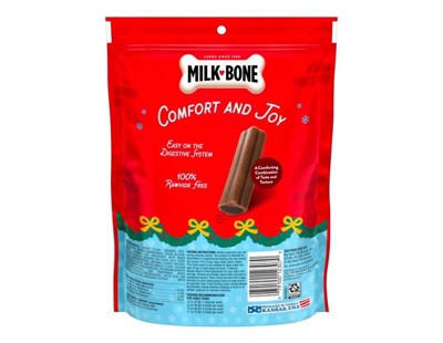 Give your dog comfort and joy this holiday season with safe and delicious dog chews you can trust. Milk-Bone Comfort Chews are rawhide free dog chews made with real beef and a uniquely chewy texture — designed for the ultimate dog enjoyment. And you can feel the joy right alongside them knowing that these chews are easy on the digestive system, as well as the teeth and gums. At the same time, the treats’ special texture helps clean your dog’s teeth as they happily chew away (so they’ll be extra-ready to give holiday kisses). Grab a bag while they last and treat your dog all season long.