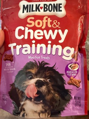 [This review was collected as part of a promotion.] Milk-Bone Soft & Chewy Training Treats are soft, chewable treats ideal for your dog's daily training. Their small size makes them perfect for rewarding without overfeeding, and their soft texture is easy to chew, even for small or older dogs. They are made with a delicious flavor that dogs love, helping to keep their attention and motivation during training. They are also an excellent way to reinforce good behavior in a practical and tasty way.