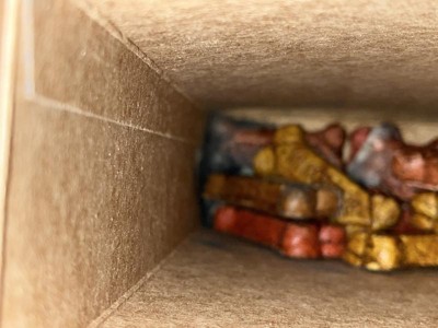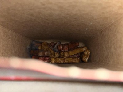 Covered in mold!! I had fed about half the box and 2 of 4 dogs would not eat them. I pulled out a handful to treat them again and 3 walked away and would not take them. I looked down at my hand covered in green fuzz.
