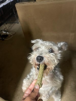 [This review was collected as part of a promotion.] My dachshund seems to like these, which was a pleasant surprise because they’re super picky. Even though it’s for smaller dogs, the treats are still fairly large.