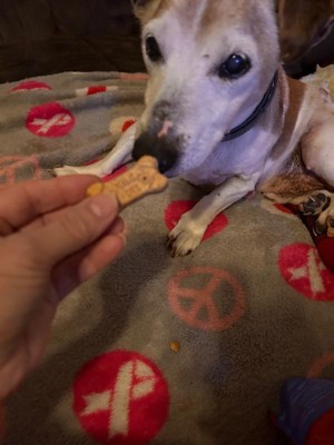 [This review was collected as part of a promotion.] Starry Night is all smiles when it comes to these treats. Peanut butter is her favorite thing so these are a big hit! They are a crunchy biscuit dipped in peanut butter. Great for an anytime treat to spoil your companion without all the calories. She loves them and that makes us both very happy.