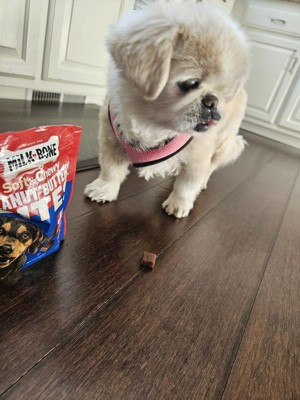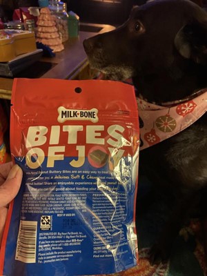 I always have a very positive opinion on Milk Bone products for my dog as they never disappoint. Now they have went to the next level. Two of my dogs favorite things in a nice tiny treat. These treat are the perfect size for my chocolate lab who is on a diet. I can still give her what she likes in a small treat once or twice a day. These do not have that horrible smell that some dog treats have. The are soft for her to chew, and stay fresh till the end of the bag with the zip top closure.
