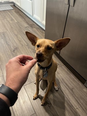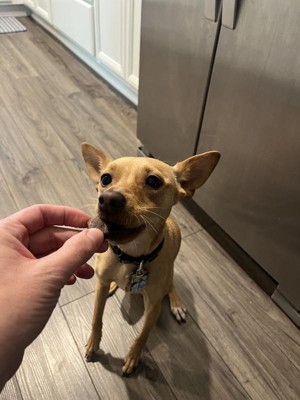 This is a perfect treat for my chihuahua. She absolutely loves peanut butter and these bites are a nice treat for rewards or a small snack. Her tail wags when she sees the treat and she immediately devoured.