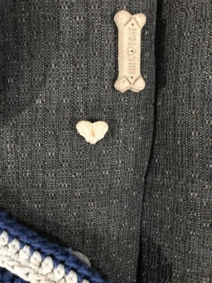 My doggy son,a Chihuahua, Platanos, loves your dog biscuits so much he growls only time when I approach him near his cookie. In addition, he chewed his cookie to show just the heart that you have on the cookie; he wants to tell me how much he loves your cookie. Best Wishes, Barbara!