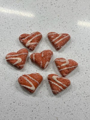[This review was collected as part of a promotion.] These are so cute. Really good size for a treat and you get a lot in the bag. They smell just like strawberry. Little pink hearts with yogurt stripes on them. My little dog loves them I've had them for about a month and still have some left. Nice little way to show your dog you love them.