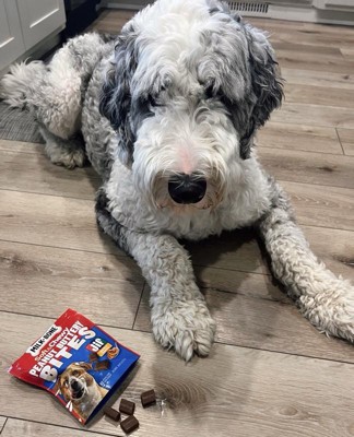 - Contains one (1) 11.8-oz. bag of soft and chewy dog treats made with real peanut butter