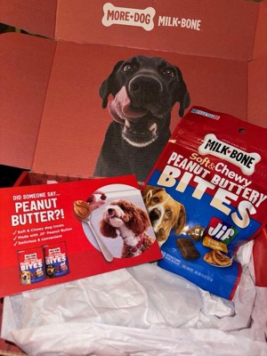 Did someone say … "peanut butter"?! For dogs, that's a mouthwatering, wag-inducing testament of love. But serving it with a jar and spoon isn't always the most convenient way … or the cleanest. Fortunately, there's an easy way to unleash that peanut butter joy. Milk-Bone Peanut Buttery Bites are deliciously soft, chewy and convenient bite-sized dog treats made with Jif peanut butter. They contain no artificial flavors, no artificial colors and no fillers — just high-quality, flavorful ingredients your dog will love. These premium soft and chewy dog snacks are easy-to-eat, wholesome treats you can feel good about feeding to your dog. Stock up now to share that irresistible Jif peanut butter taste every day.