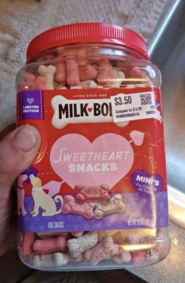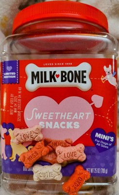 Milk-Bone Valentine Sweetheart Snacks Dog Treats Biscuits Canister with Chicken, Bacon & Beef Flavor - 25oz