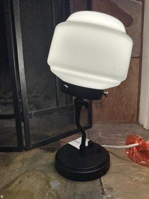 Light up your home office or any other area using the Milk Glass Solid Wall Sconce from Hearth & Hand™ with Magnolia. Made with metal, this black wall sconce features a white milk glass globe shade for a traditional look that works well with a variety of existing decor. The sconce comes with a socket turn knob rotary switch and fabric-covered cord so you can place it by any outlet to add a beautiful touch of illumination to your space.