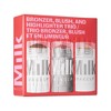 A trio of Milk Makeup's best-selling buildable, blendable cream makeup sticks, including a full-size Matte Bronzer, Lip + Cheek, and Highlighter. It's 60-second makeup you can't get wrong. Just swipe, blend, and go.