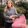 The same 5-in-1 Milk Snob multifunctional cover you already love in an even more luxuriously soft fabric, in a beautiful dark pink color. Use it as a car seat cover, nursing cover, shopping cart cover, high chair cover, infant swing cover, and more. Easily store in a diaper bag or purse to use anywhere, any time.