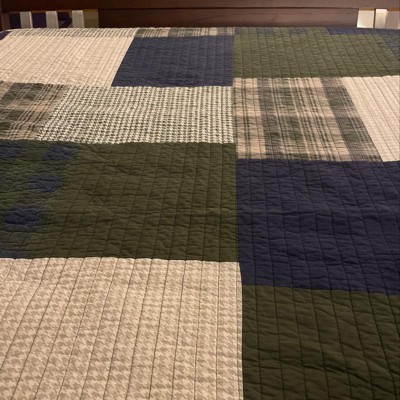 Create a cozy cabin look in your bedroom with the Mill Creek Oversized Cotton Quilt Set. The cotton quilt and matching shams feature a pieced patchwork design, in green, navy, and taupe hues, that elevates your bedroom with an inviting lodge allure. Pre-washed cotton-rich filling provides comfort and durability, making this oversized cotton coverlet perfect for use in the summer or as a layer for extra warmth in the winter. This patchwork quilt mini set is also machine washable to make cleaning a breeze.