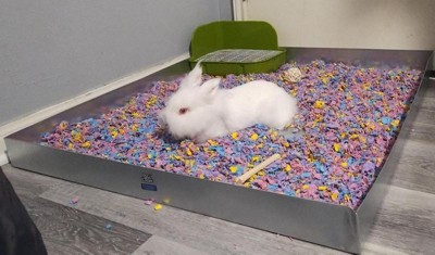 [This review was collected as part of a promotion.] My bunny loves this Dropping Pan so much, since its very huge, she likes to just walk around all over the place. I like that she has freedom and she doesn't stay in just one place. And it's very easy to clean since it's metal.