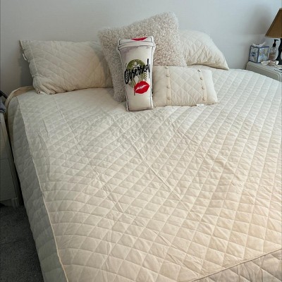 [This review was collected as part of a promotion.] This Bedspread Set is of the highest quality in my opinion...it has a "classy" look. The feel of it is excellent, as well as the fit! I love the color (ivory) and the trim (white). It really dresses up my room. I love it!