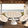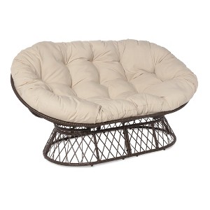 -This charming double papsan chair is great for relaxing indoors or outdoors. Its woven poly rattan frame and water-resistant cushion offer comfort and timeless style. Use it to create a cozy reading spot in a living room or bedroom, or enjoy it outside on a patio or in a garden, as it is built to last and has a water-resistant cushion.